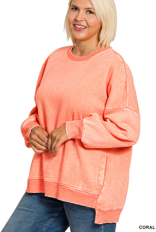 Acid wash fleece hi-low pullover (Reg and Plus)
