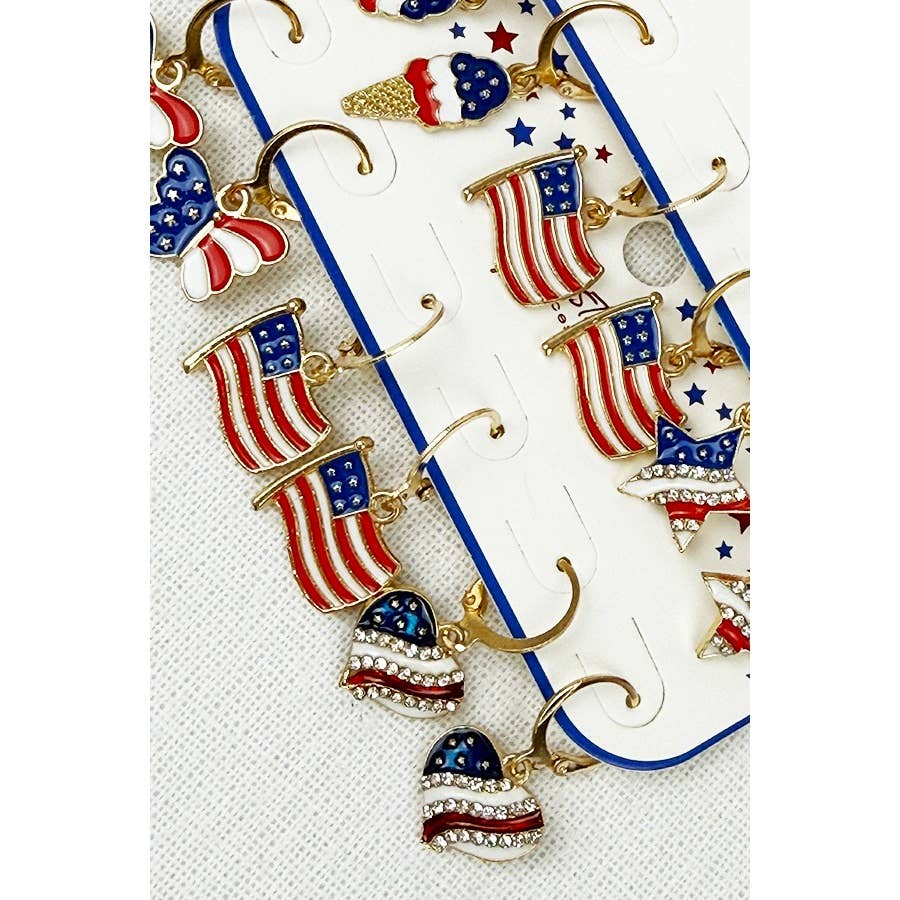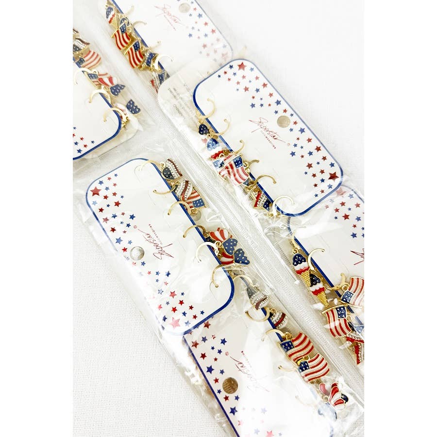 3-Pair 4TH OF JULY Huggie Earrings -Everyone needs patriotic jewelry accessories on July 4th. Loving these new red,white,blue patriotic earrings. 3 Pair per each card