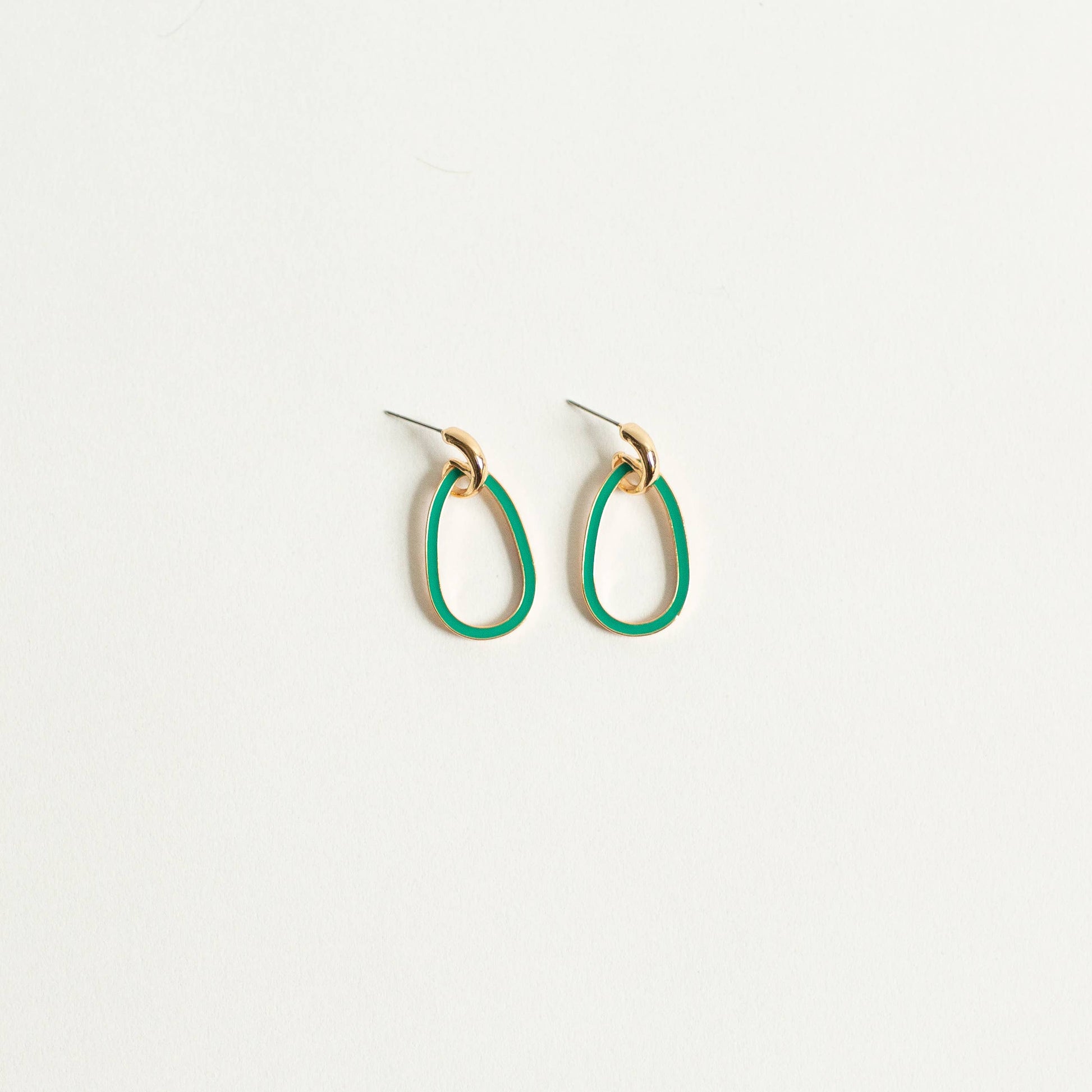 The long oval Ava earring is a fun and light weight earring. Available in white or emerald with gold-tone accents. A classic design with a bit of a fun pop of color. This is a great piece to have in your jewelry box for a good go-to simple design. Oval shape from a post small hoop.