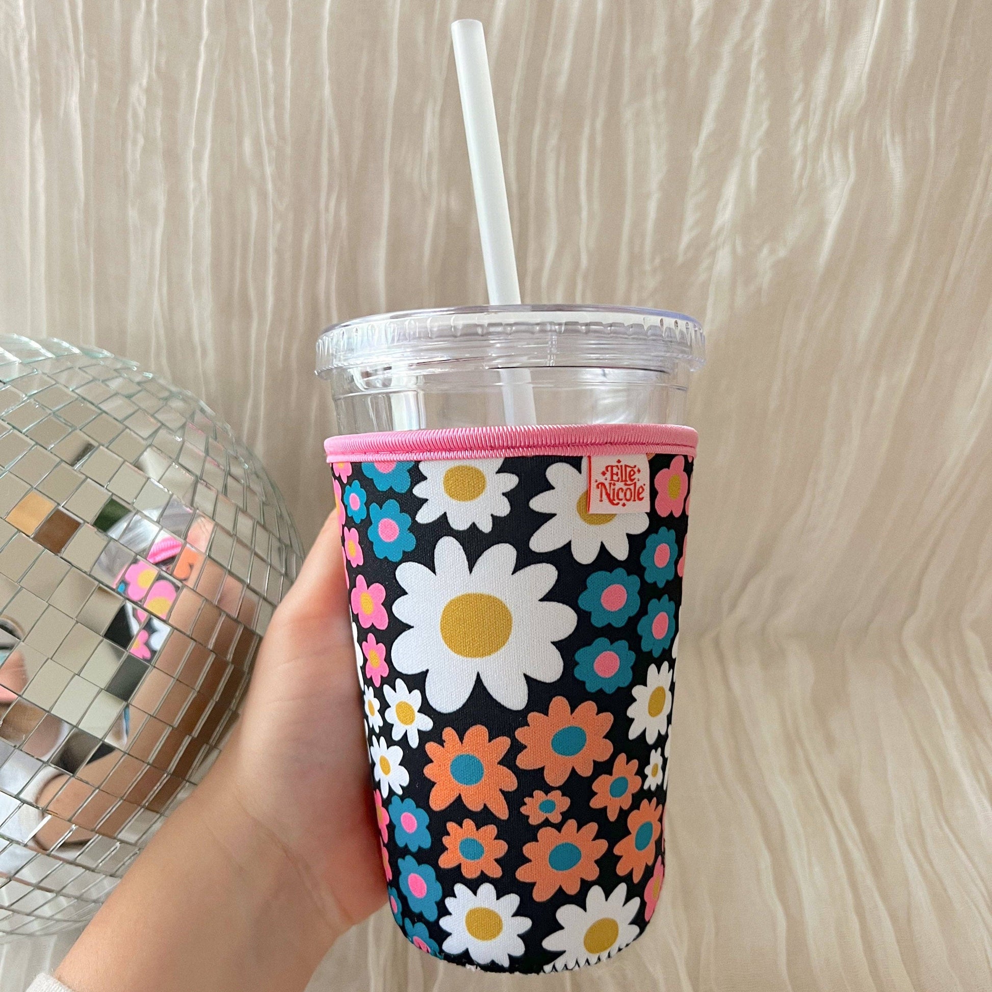 Stay cool and covered with this Cutie Cup Cover! Put your own stylish spin on your cup with Ellē Nicole's hand-drawn retro florals - the perfect fusion of fashion and function! The neoprene material insulates your cup, keeping your beverage cooled while also keeping your hands nice and dry.