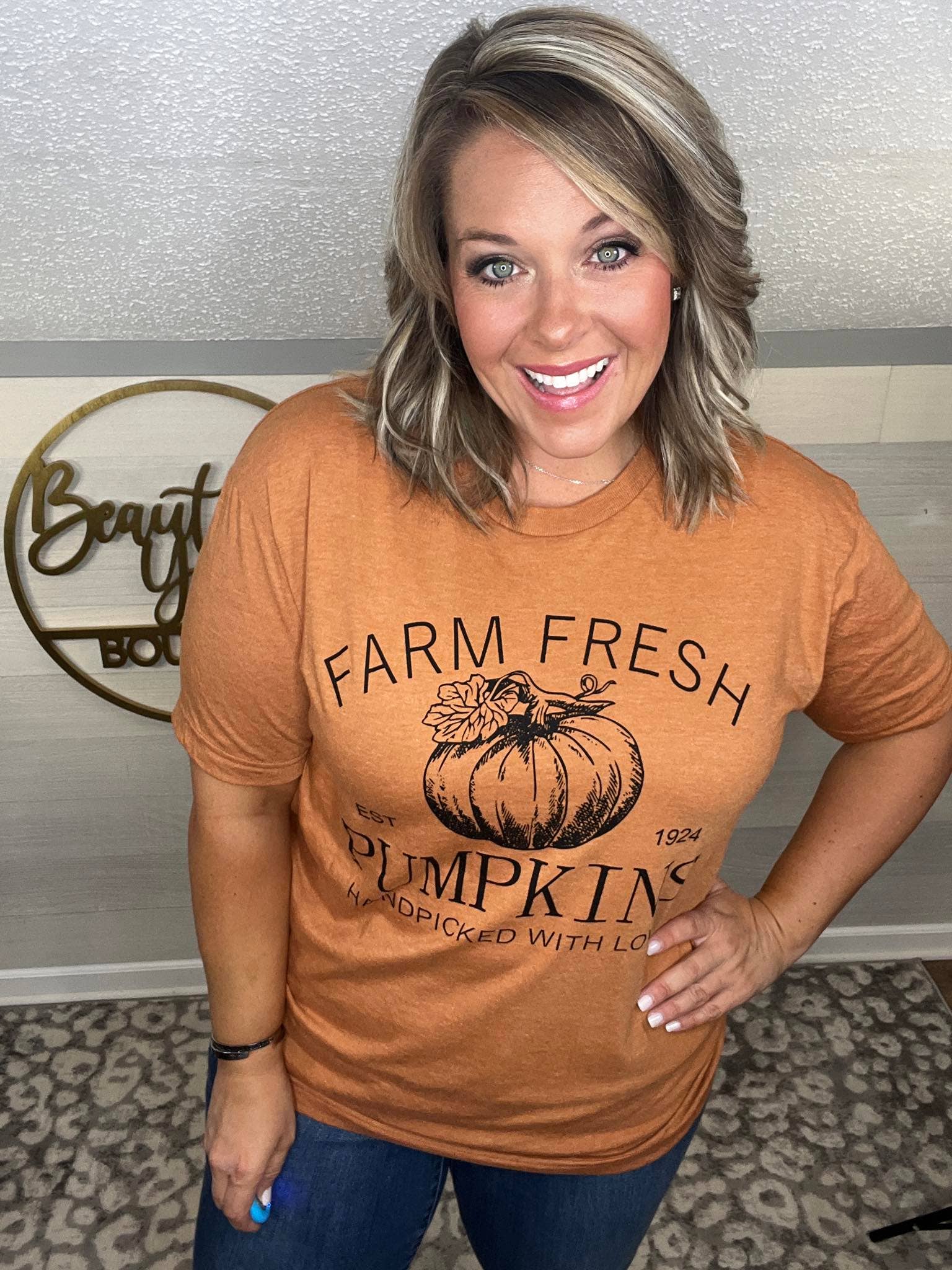 FARM FRESH PUMPKINS HEATHER RUST FALL GRAPHIC TEE HEATHER RUST TULTEX SUPER SOFT! * Unisex Sizing TTS *
