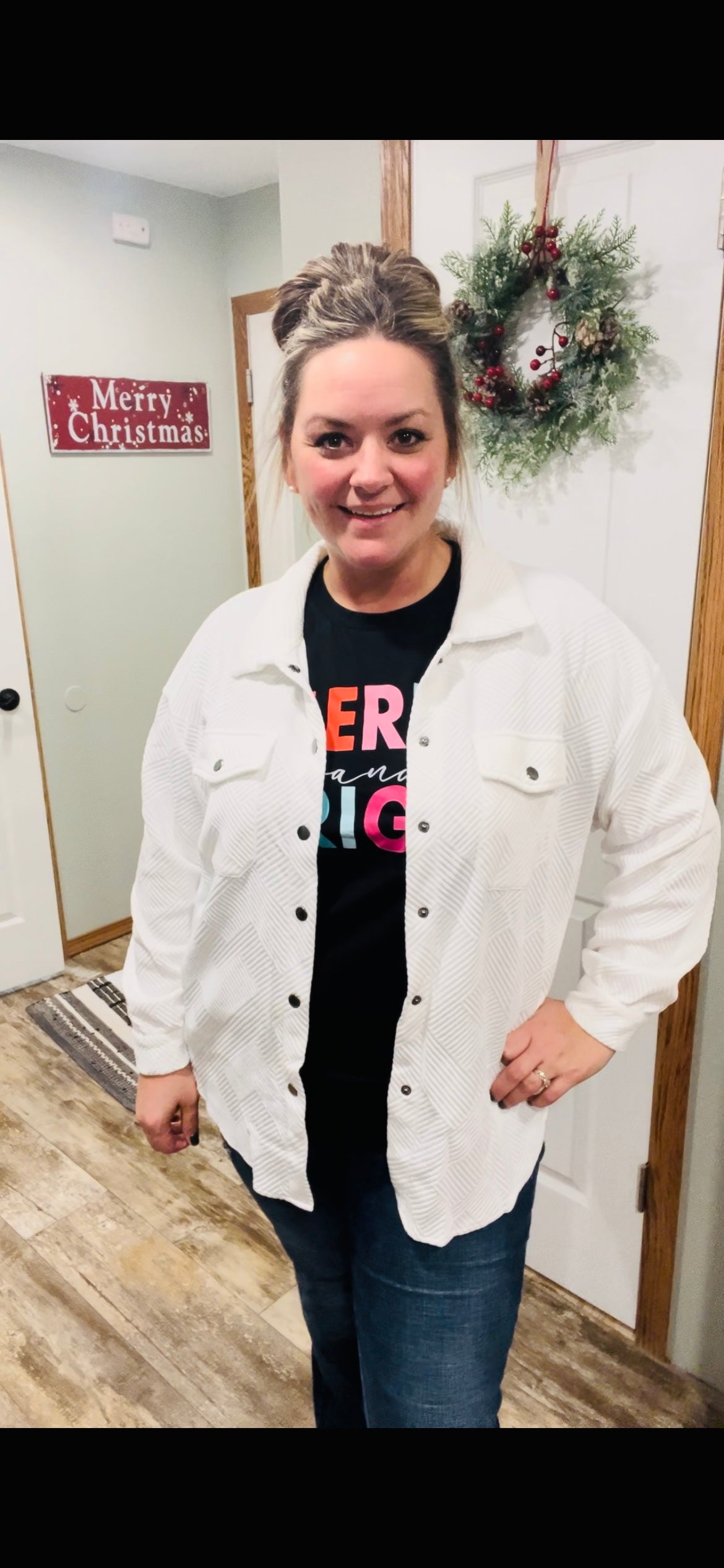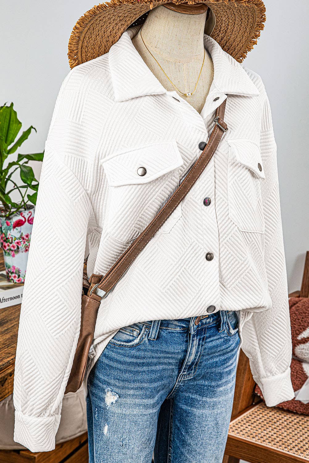 White Textured Snap Shacket