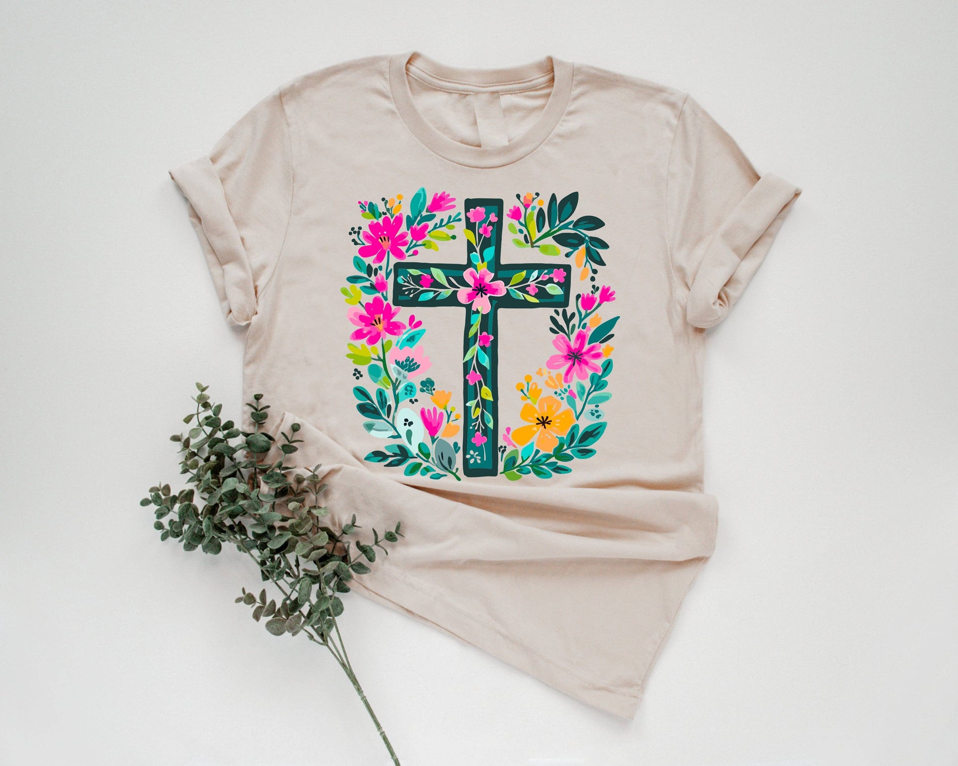 Floral spring trendy cross TULTEX CREAM UNISEX * Unisex Sizing TTS * Short sleeve, crew neck tee. Care Instructions: * Wash inside out in cold water