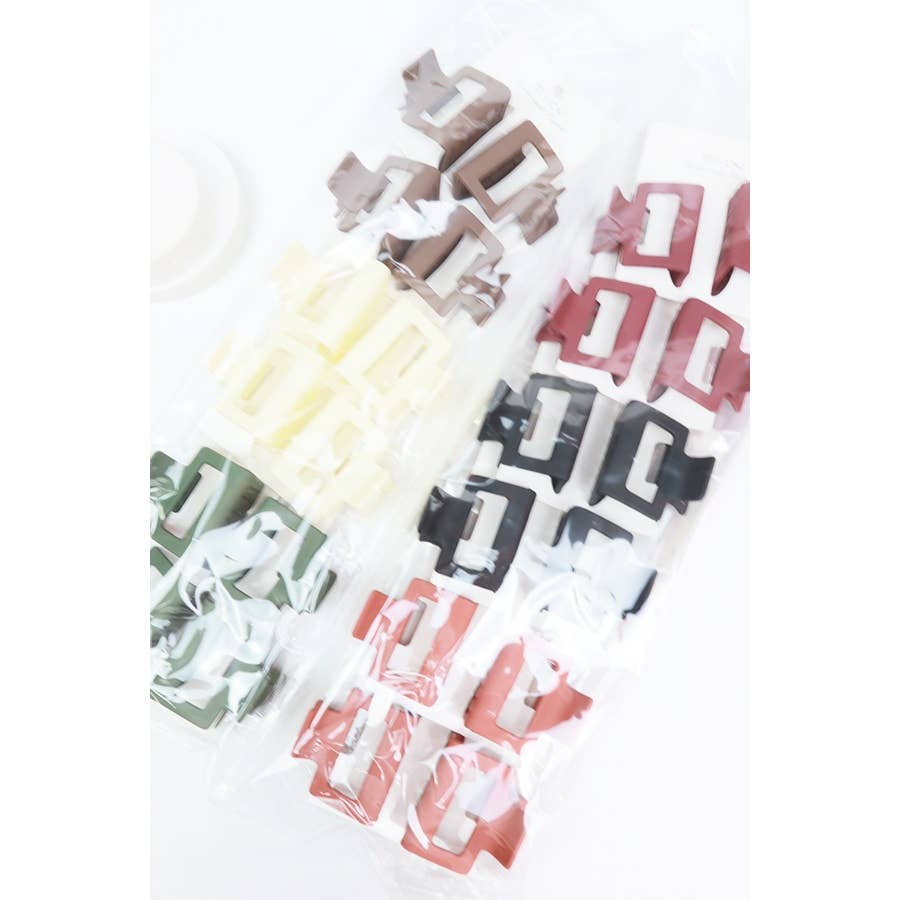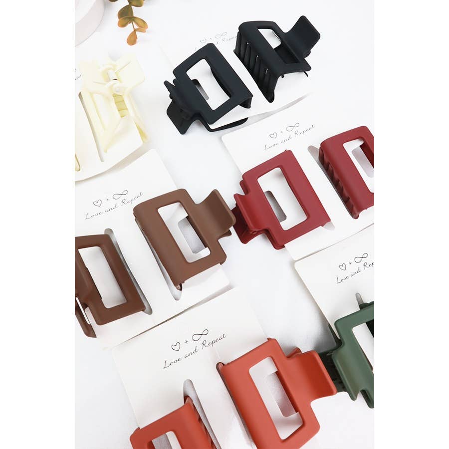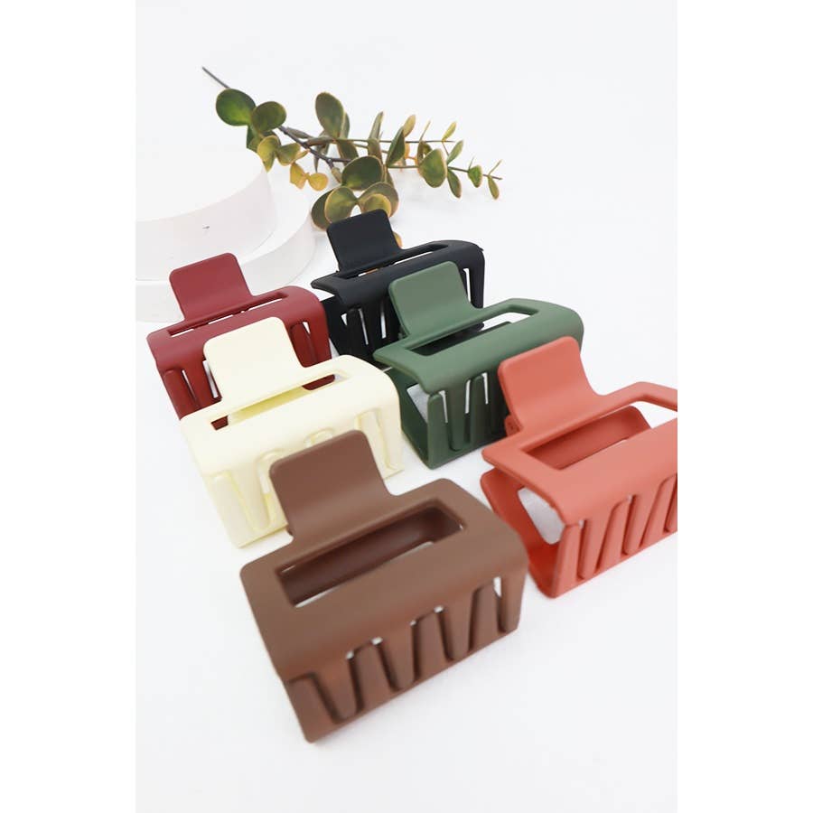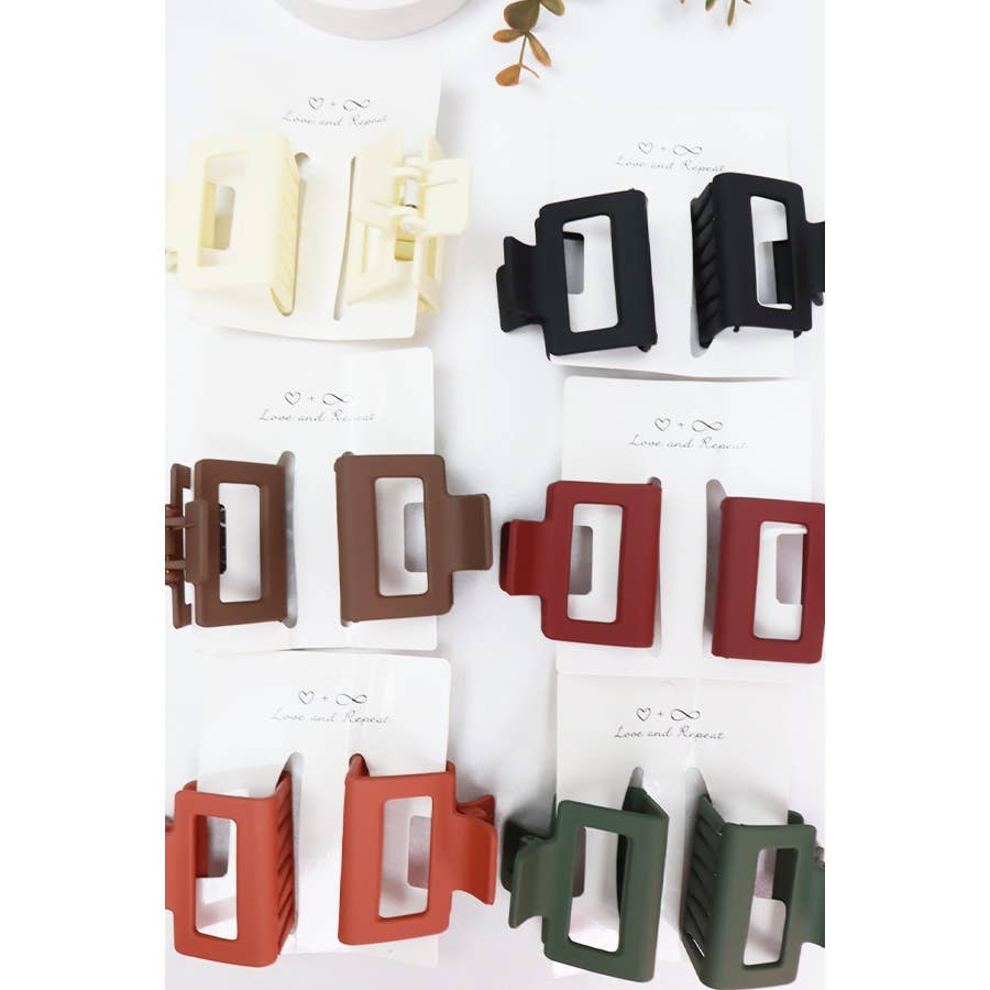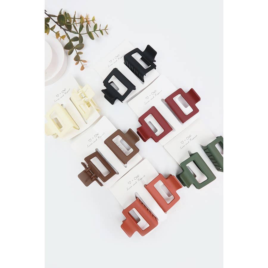 2-Pcs Matt Small Cut Out Rectangle Hair Claw -Size: 2 1/4 x 2 Inch -6 Color Assorted -6 colors 2 pairs each in 24pcs