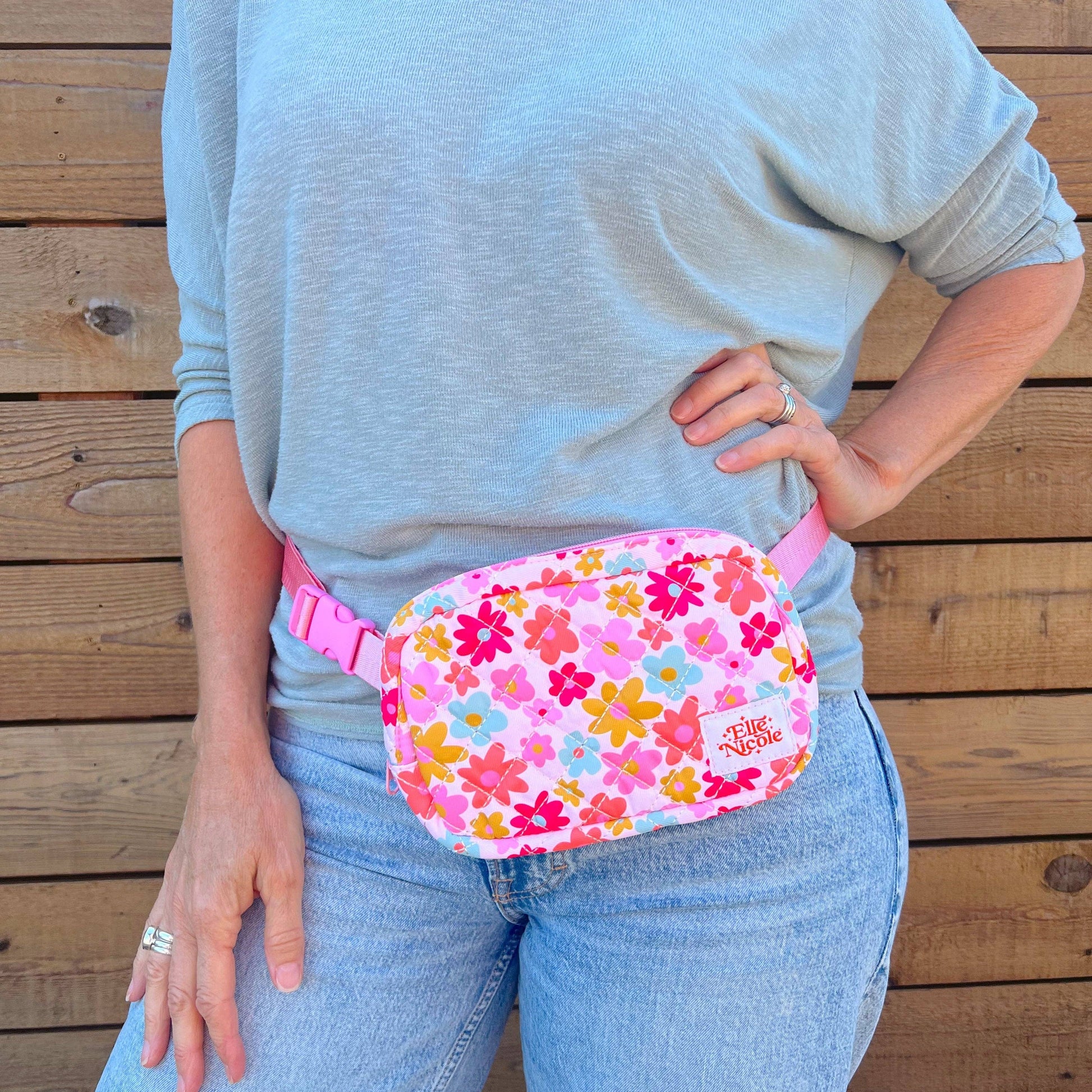 Stay hands-free and stylish with our Quilted Belt Bag in our playful floral design by Ellē Nicole. Perfect for any adventure or everyday events, this beautiful crossbody bag features a pick-pocket proof zipper in the back, lined with interior pockets, and can be worn as a traditional crossbody or as a fanny pack around your belt loops. Keep your belongings safe and your outfit on point with this fun and functional accessory!