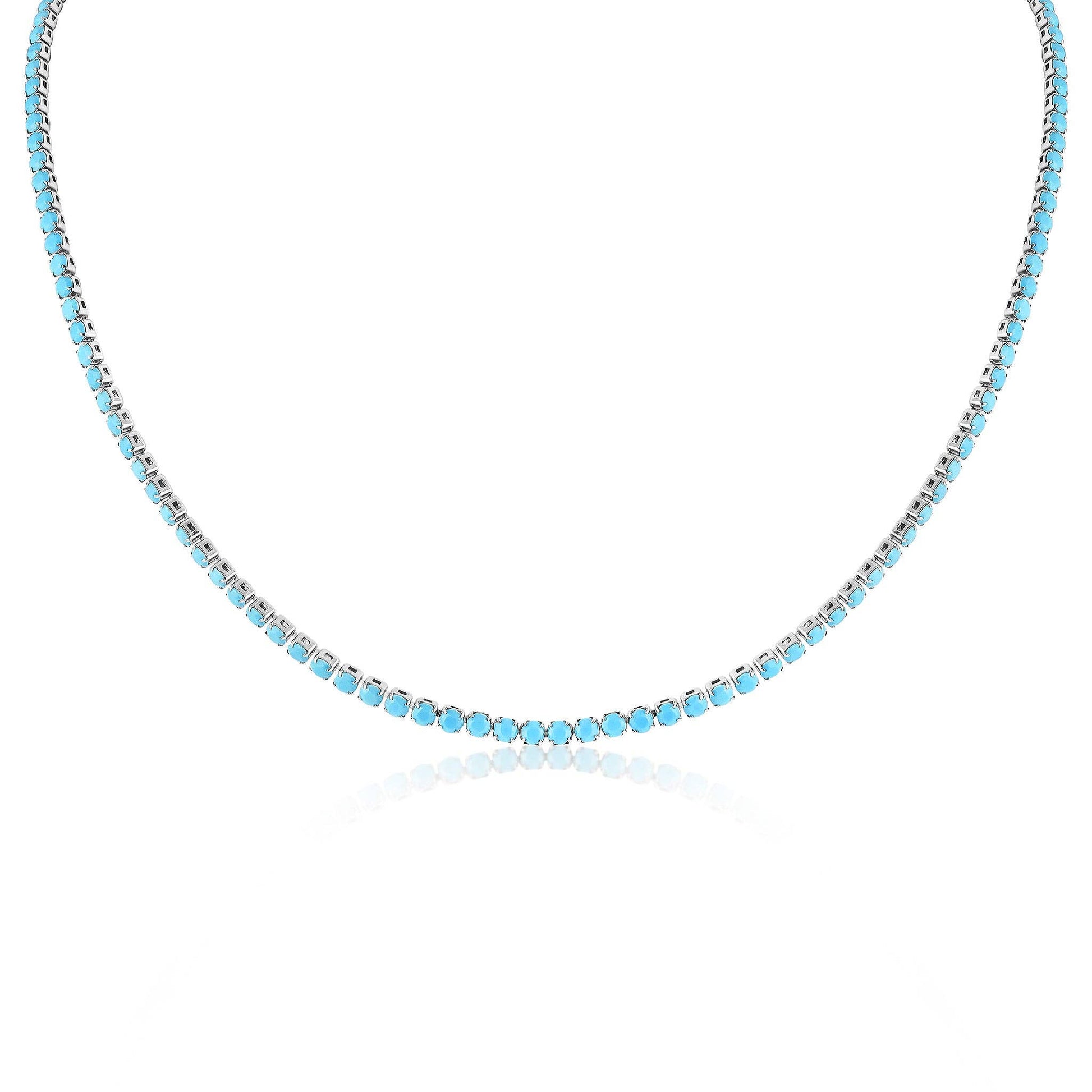 Stainless Steel Turquoise Rhinestone Tennis Chain Necklace