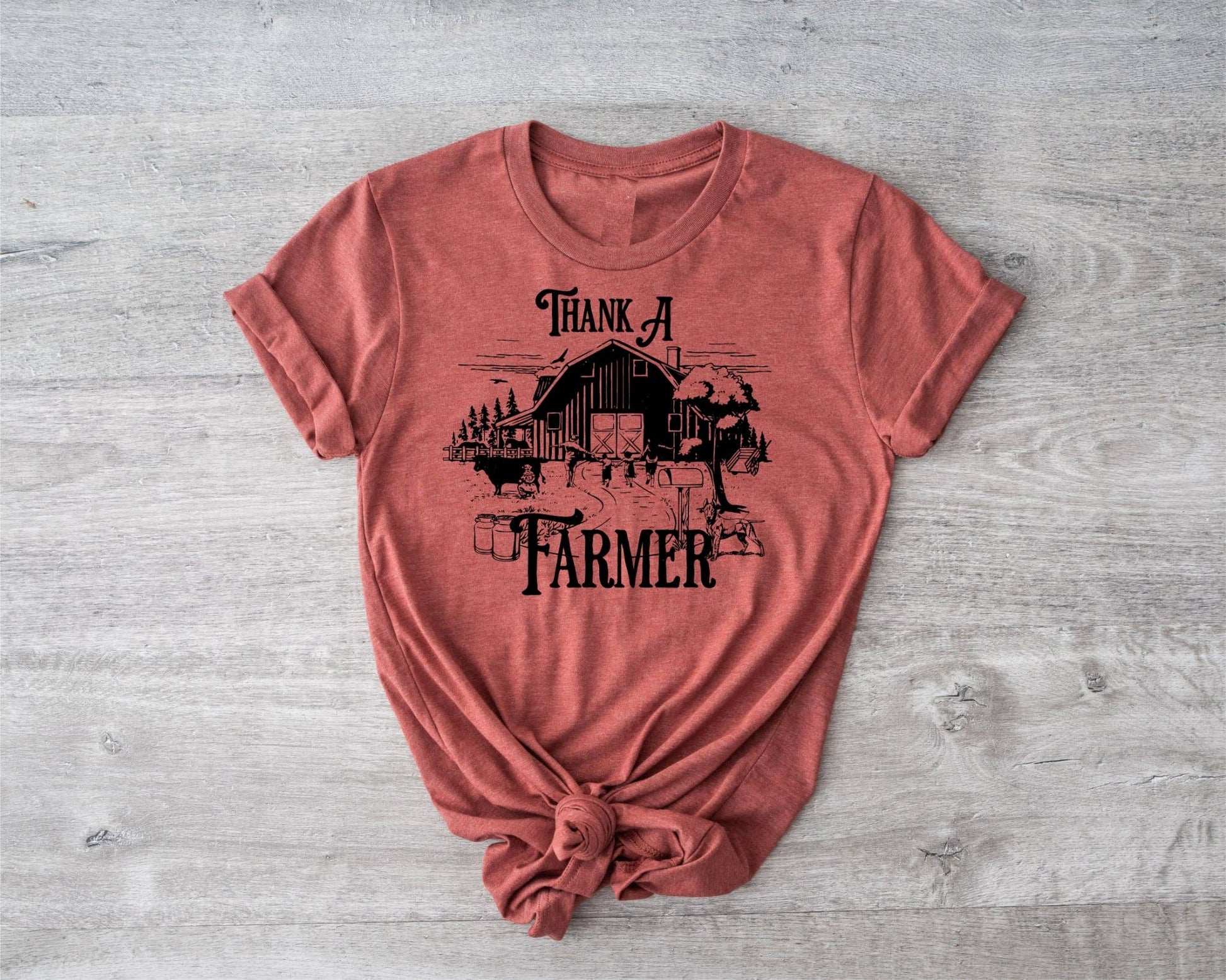 Thank a Farmer Rust Western Graphic Tee. Professionally Screen Printed | This Western-inspired graphic tee features rustic charm with a bold vintage flair—designed for the wild-hearted woman who loves dusty roads, desert sunsets, and country music.