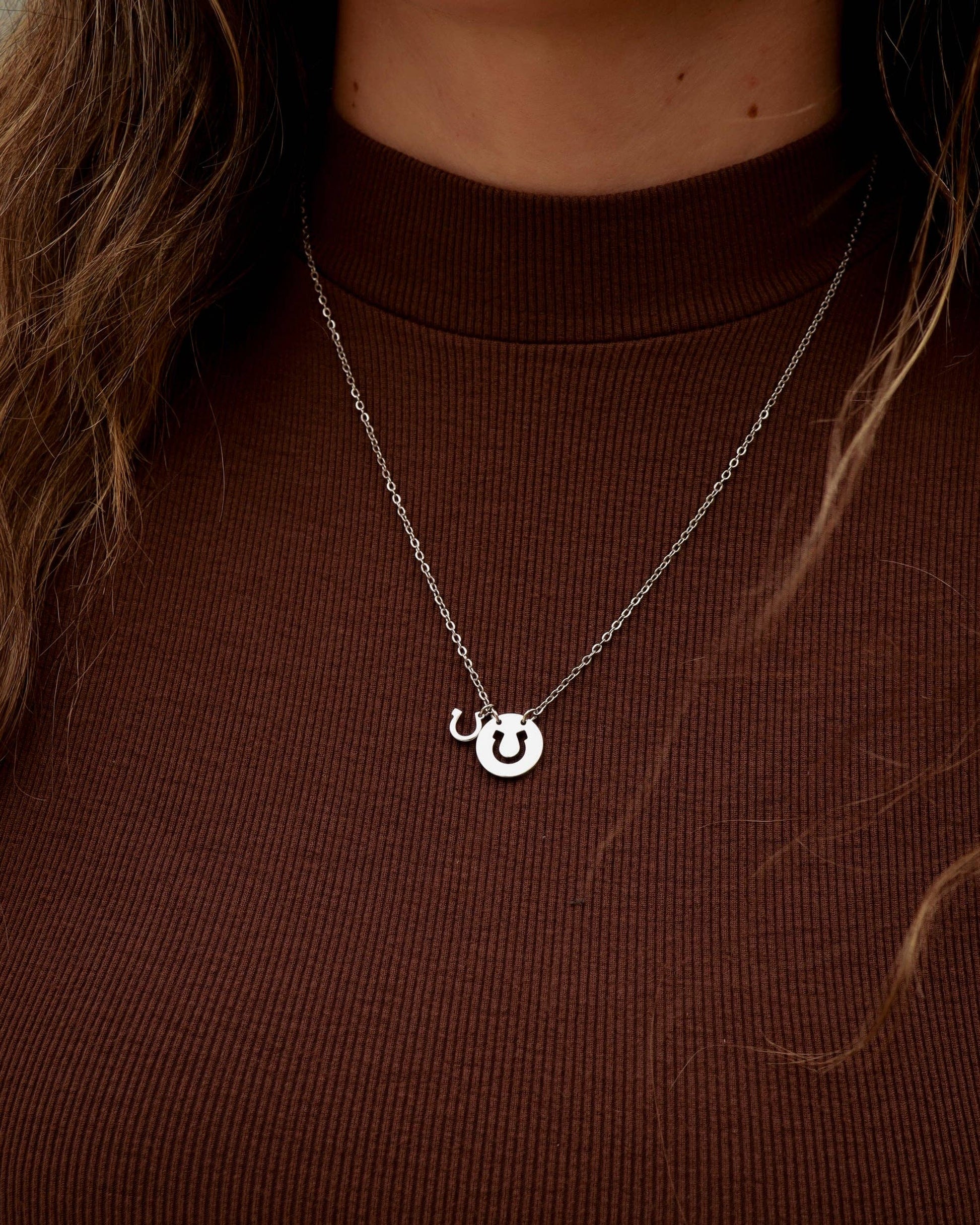 Elevate your collection of western jewelry with this stunning horseshoe necklace! This horseshoe necklace features a 13mm horseshoe pendant on an 18" loop chain with a 2" extender. • Waterproof, non-tarnish, hypoallergenic • Available in classic stainless steel and 18K Gold PVD • Attached 2" chain extender • Lobster clasp closure Chain Dimensions: 18"+2" x 2mm PVD Coating We use the process of PVD Coating our 18K Gold necklaces over surgical grade 316L stainless steel for a non-tarnish, hypoallergenic finish that will hold up best to everyday wear and will never turn your skin green. Approx. Weight: 5 grams