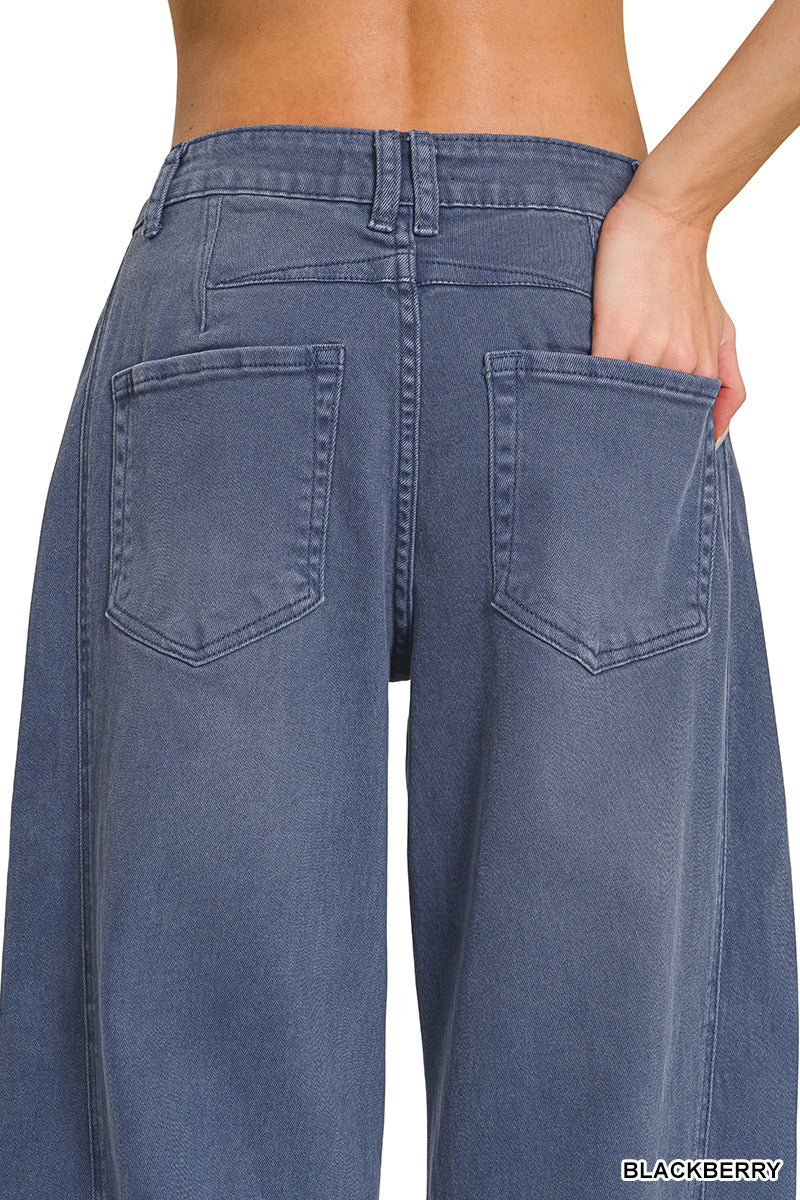 BARREL-LEG CROPPED COLOR DENIM PANTS - blackberry color (appears like a denim)